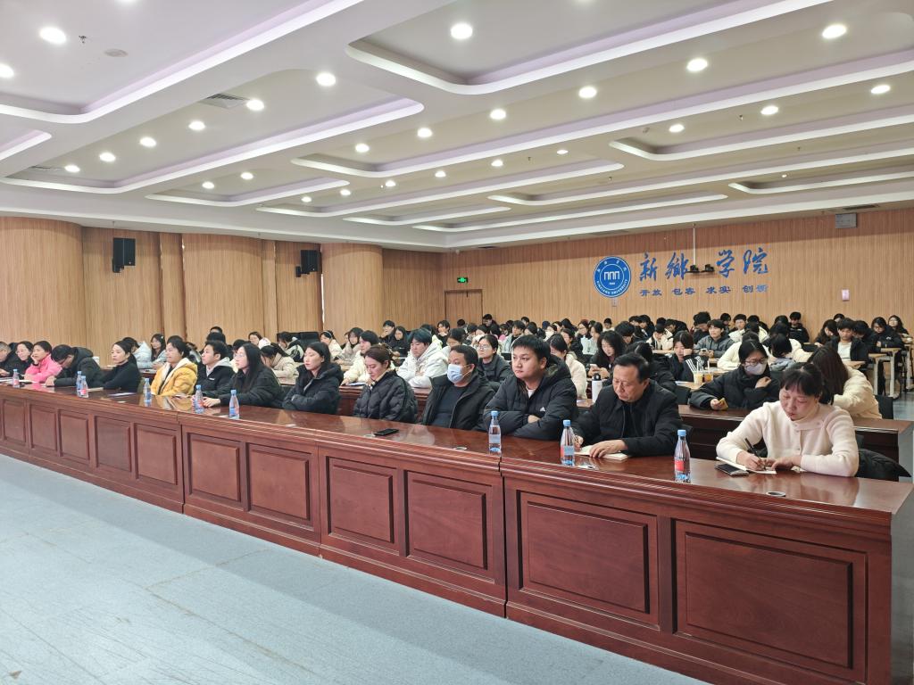 为切实做好大学生城乡居民医保参保缴费工作,让同学们全面了解医保政策、便捷享受医保福利,12月3日下午,医保科邀请新乡市医保中心,共同召开大学生城乡居民医保政策专题宣讲会。新乡学院学生处副处长贾晓萌、校医院院长金耀斌、医保科科长赵慧、新乡市医保中心注册科科长费凡及宣讲员高佳静出席活动,全校各院系负责医保工作的辅导员及学生代表共计150余人参加。